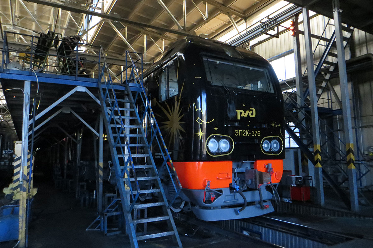 Специалисты СЛД «Санкт-Петербург» произвели подготовку к запуску в работу электровоза ЭП2К-376, окрашенного в цвета вагонов поезда «Ночной экспресс».