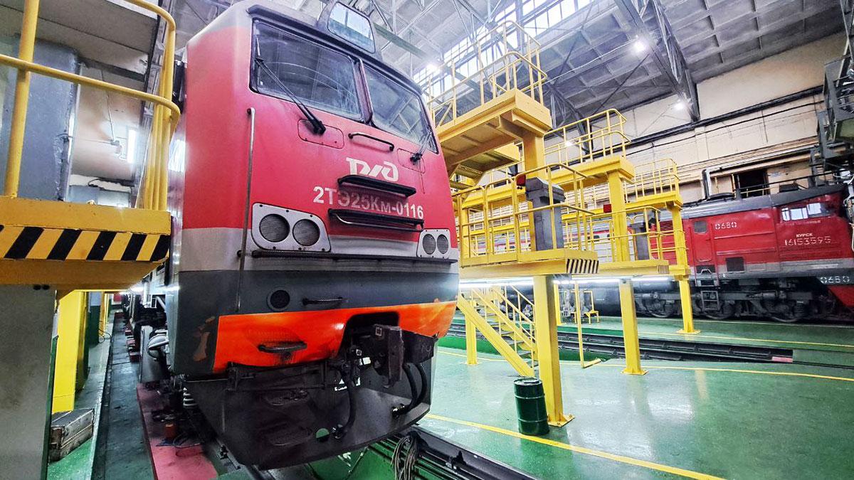 «Сегодня около половины парка депо представлена современными магистральными грузовыми двухсекционными тепловозами с электрической передачей переменно-постоянного тока серии 2ТЭ25КМ. Изначально ремонтные позиции не были рассчитаны на обслуживание тепловозов этой серии. Большую часть времени людям приходилось работать в неудобном положении, теперь эта проблема решена», - пояснил начальник сервисного локомотивного депо «Брянск-Льговский» филиала «Московский» ООО «ЛокоТех-Сервис» Андрей Чурков.