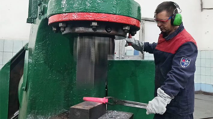 Денис Шмитько – единственный кузнец в депо, поэтому ему приходится работать и вручную, и на специальном оборудование. В его распоряжении есть кузнечные молоты и прессы, которые позволяют создавать детали и заготовки различных профилей и размеров, а также выполнять те операции, которые нельзя сделать вручную. Например, заготовку валика тормозной рычажной передачи. Она весит 18 кг и на её изготовление уходит до двух с половиной часов. Эта деталь нужна для передачи тормозного усилия от тормозного цилиндра на тормозные колодки колесной пары локомотива.
