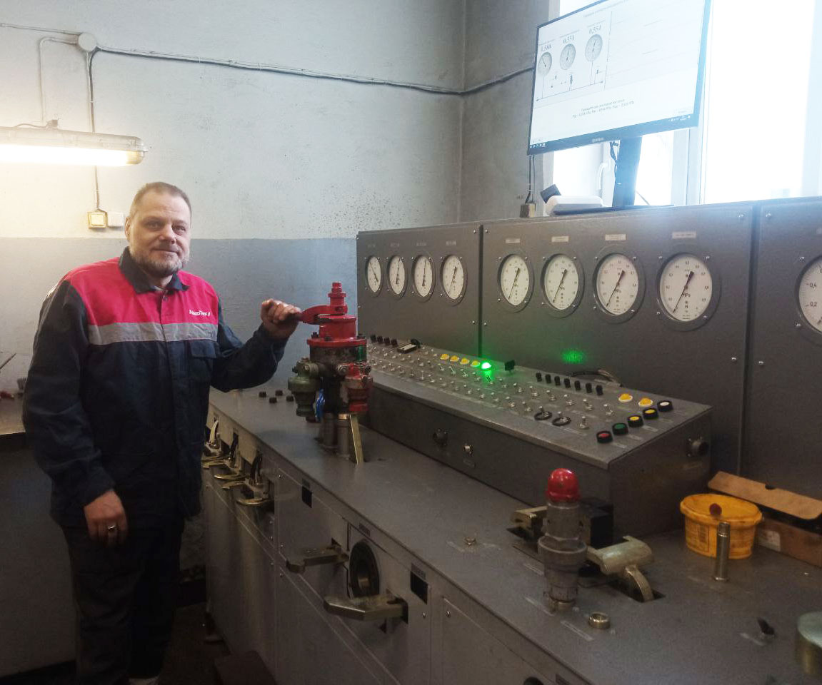 Слесарь по ремонту подвижного состава 6 разряда Борис Терешин за неделю освоил работу на новом стенде. За это время он успел протестировать под нагрузкой несколько приборов, включая краны и предохранительные клапаны, в рамках ТО-3 и ТР-1 локомотивов, на которых специализируется отделение.