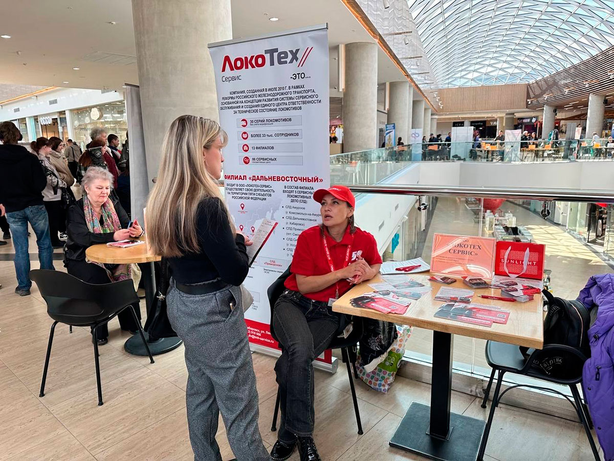 Специалисты по подбору персонала филиала «Дальневосточный» компании «ЛокоТех-Сервис» представили соискателям актуальные вакансии компании и подготовили материалы с исчерпывающей информацией.