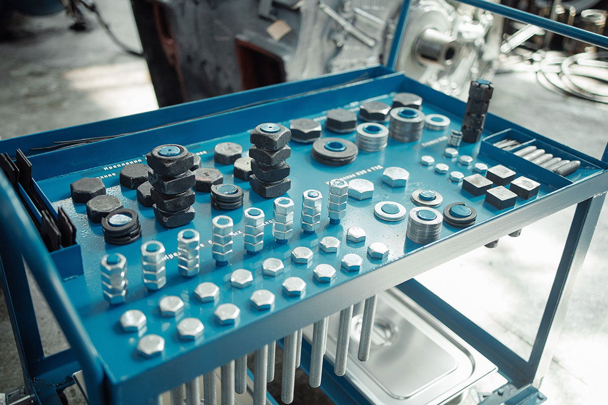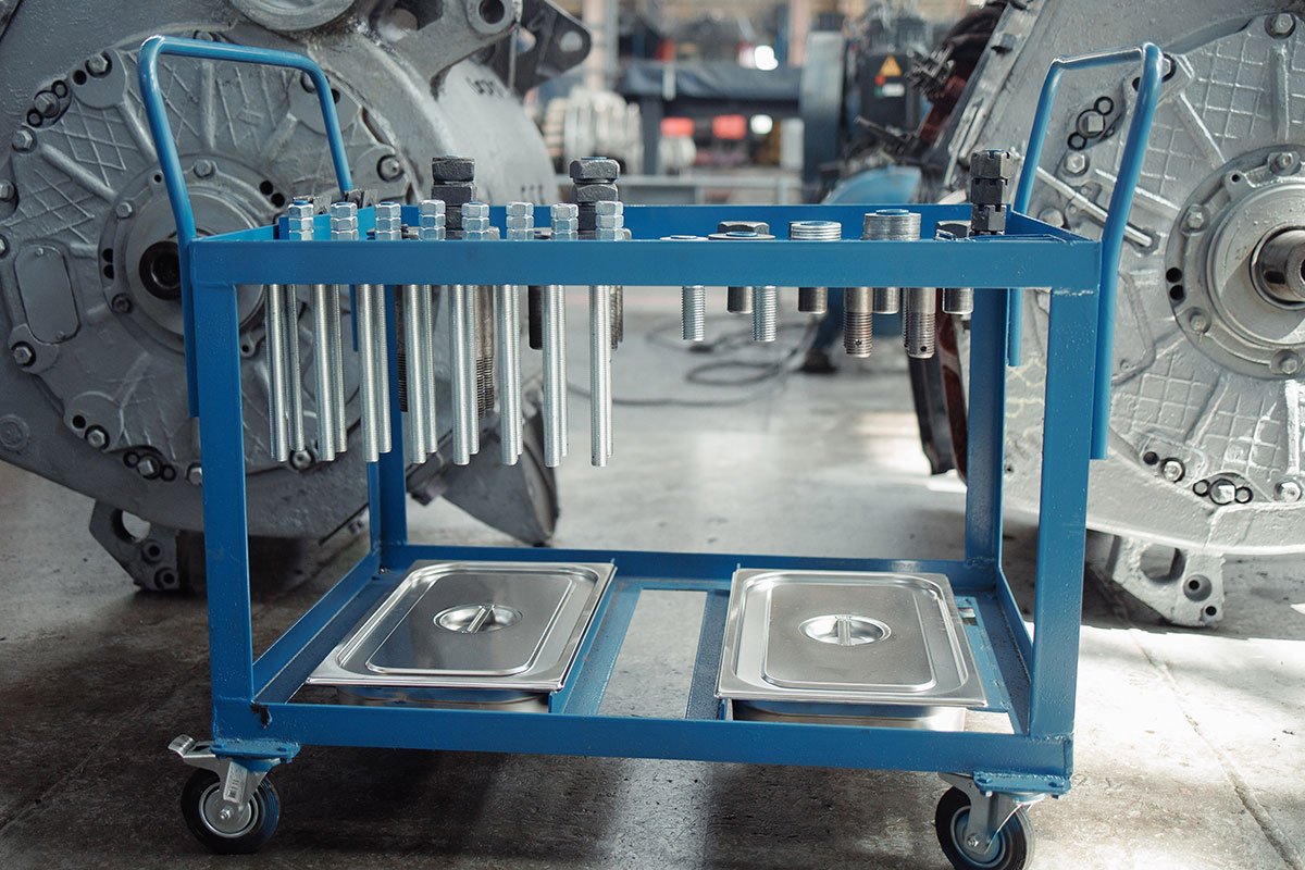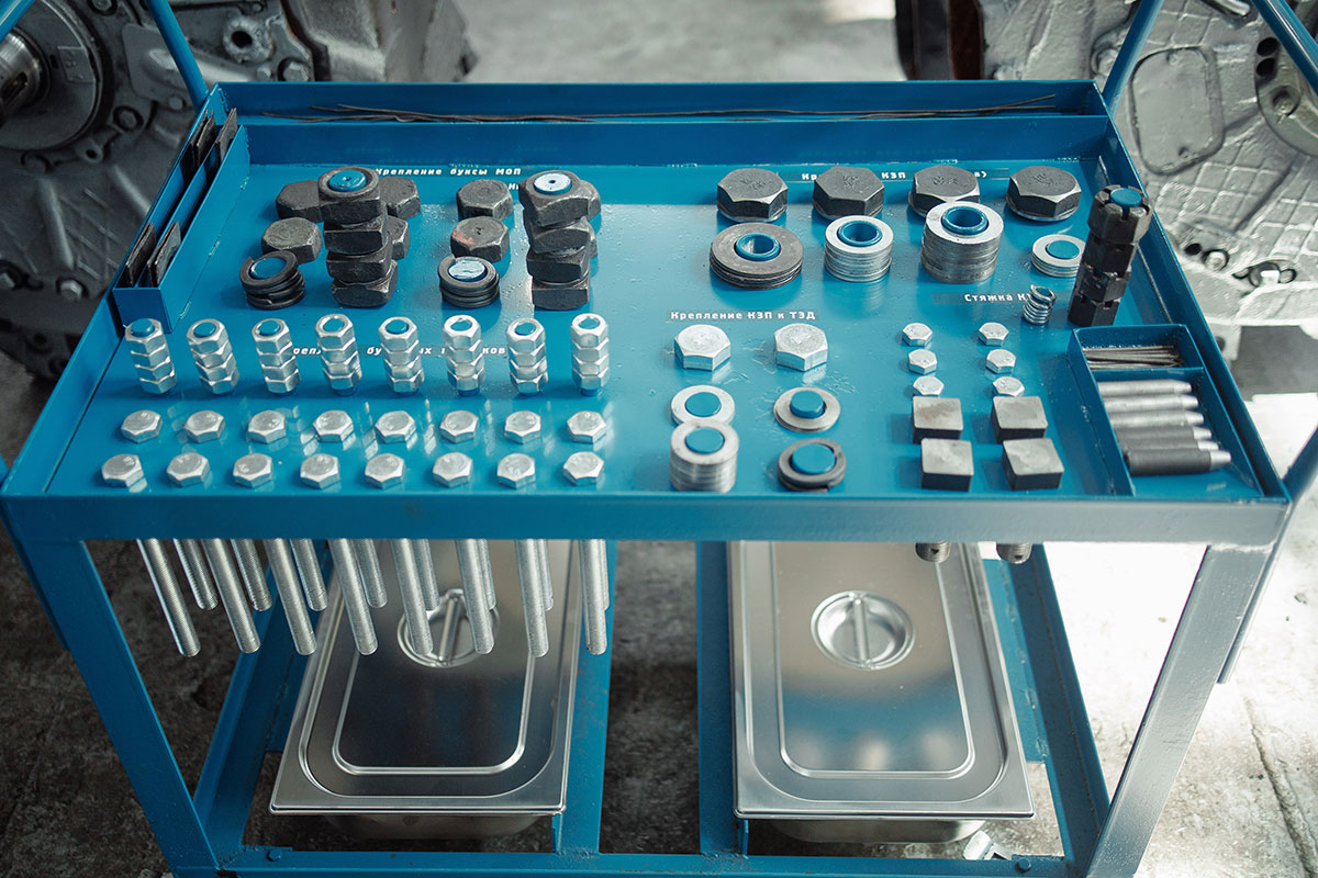 Комплектовочная тележка является составной частью проекта по переходу на новую систему комплектации. Данная модель включает в себя все необходимые элементы для быстрого и качественного ремонта КМБ. В ней предусмотрены все необходимые запасные части для работы. Каждый болт, гайка и деталь имеют строго определённое место. Это позволяет слесарям не тратить время на поиски нужных запчастей и сосредоточиться на ремонте.