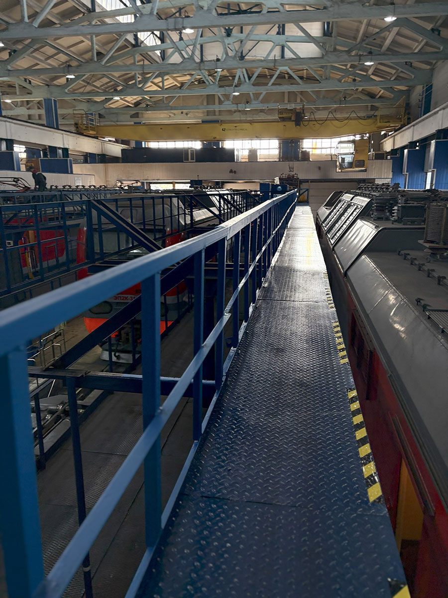 Параллельно были проведены работы по улучшению условий труда. Например, система освещения на эстакаде 1-го уровня заменена на энергоэффективную. Изготовлена и введена в эксплуатацию новая эстакада 3-го уровня, позволяющая безопасно и эффективно проводить работы по обслуживанию и ремонту оборудования, расположенного на крыше электровозов.