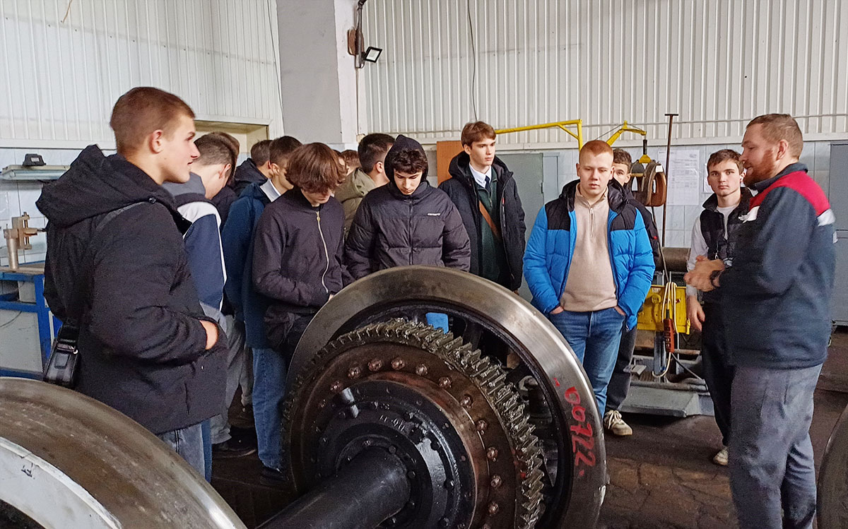 С будущими коллегами поделился знаниями и опытом начальник отдела расследования и контроля безопасной эксплуатации подвижного состава Иван Еганов. Он не только подробно ответил на десятки вопросов, но и увлек студентов рассказами о мире железнодорожной техники.