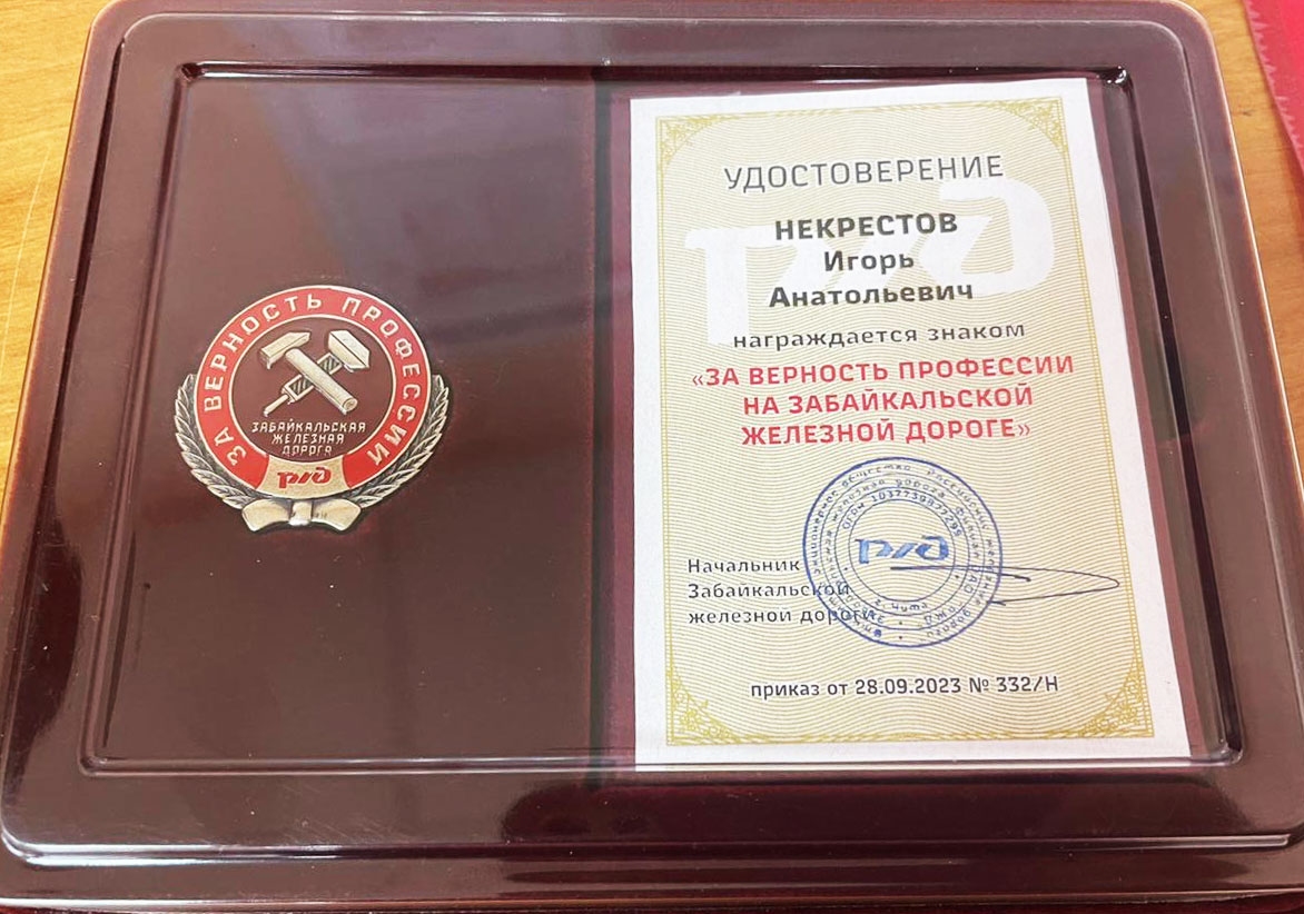 - Именными часами начальника Забайкальской железной дороги награжден: