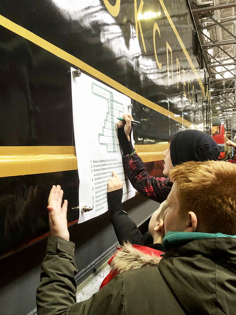 «Но и здесь наших юных посетителей ожидали приключения. Например, для того, чтобы получить разрешение зайти в электровоз и посмотреть кабину управления, необходимо было правильно разгадать кроссворд, который был закреплен прямо на кузове локомотива. А для осмотра очень редкого электровоза ЧС200 - разгадать несколько тематических загадок. Надо сказать, учащиеся МОЖД легко находили ответы, что свидетельствует об их вовлеченности в железнодорожную тематику», - отметил Д.Федоров.