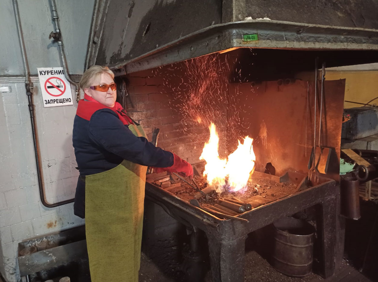 На первом месте - кузнец на молотах и прессах. Единственный пока подобный специалист филиала работает в сервисном локомотивном депо (СЛД) «Лиски» Наталья Рябинина занимается ковкой деталей для локомотивов. И у неё это отлично получается.