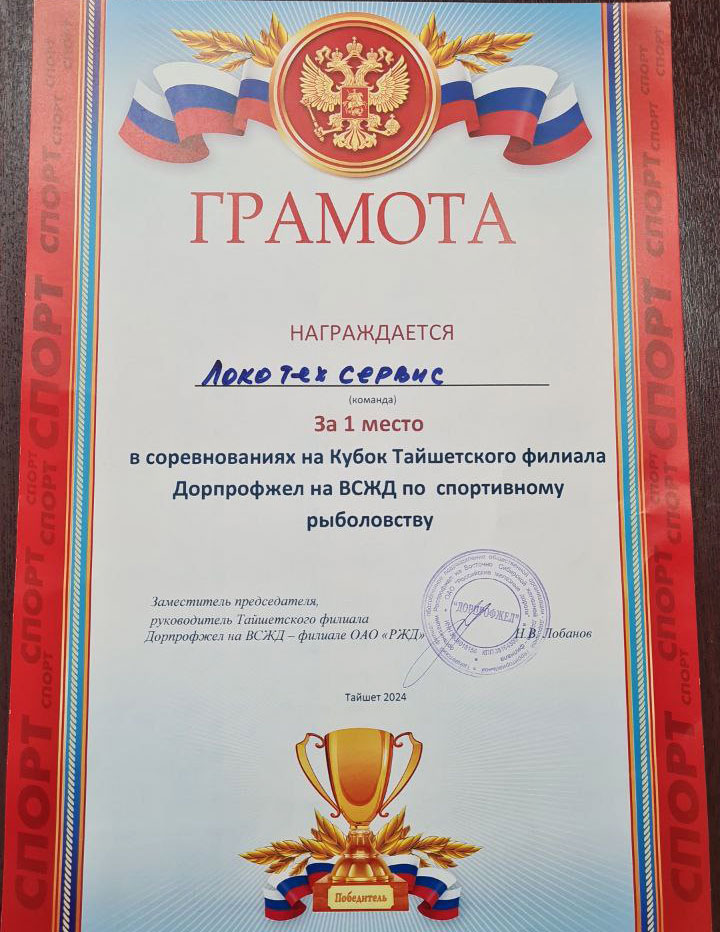 Команда рыбаков сервисного локомотивного депо (СЛД) «Тайшет» филиала «Восточно-Сибирский» ООО «ЛокоТех-Сервис» приняла участие в соревнованиях по подлёдному лову среди работников Тайшетского узла Восточно-Сибирской железной дороги.
