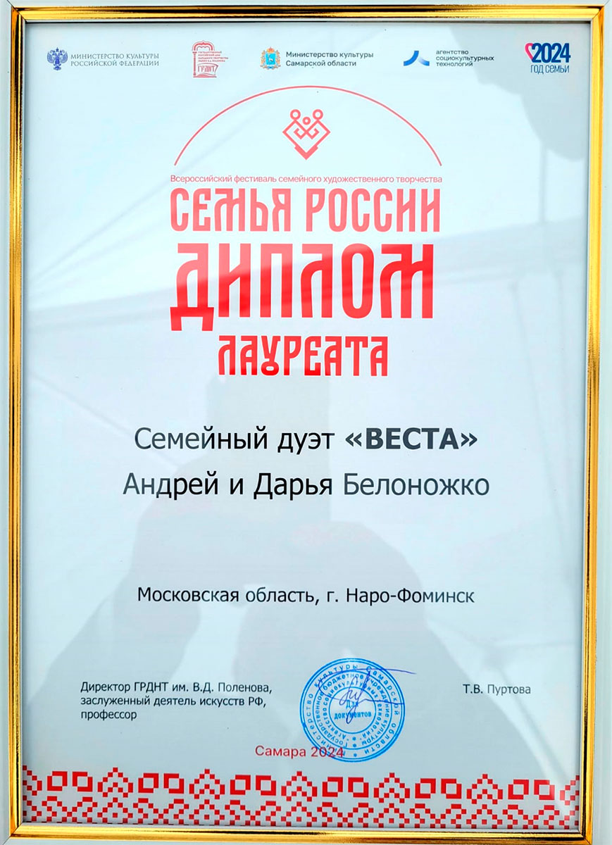 «Я был очень удивлен, что мы прошли все этапы отбора и попали на финал фестиваля в Самару. Из тысячи заявок в финал конкурса вышли всего 24 семьи со всей России, в том числе и наш семейный дует. Теперь в планах – участие в фестивале в следующем году», - поделился Андрей Белоножко.