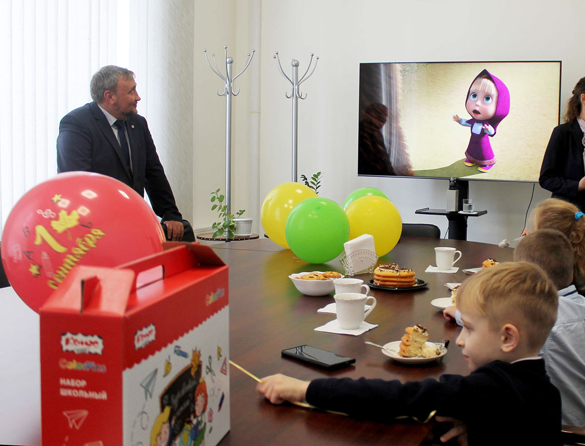 Также ко Дню знаний в аппарате управления филиала принимали у себя первоклашек - детей сотрудников. Для ребят было устроено чаепитие и просмотр мультфильмов. В завершении мероприятия директор филиала Николай Серенко поздравил ребят с началом нового этапа в их жизни и вручил первоклассникам наборы канцтоваров.