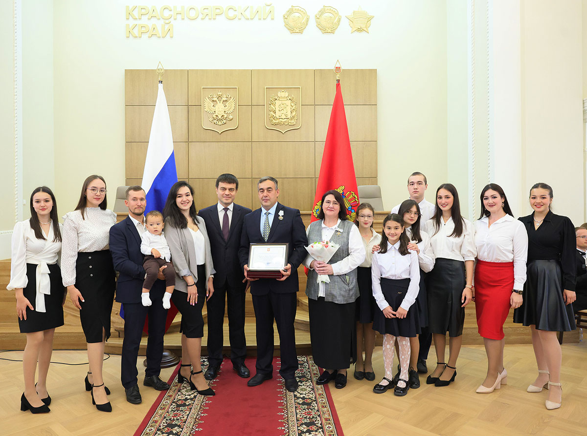 Губернатор Красноярского края Михаил Котюков вручил орден «Родительская слава» семье слесаря по ремонту локомотивов сервисного локомотивного депо (СЛД) «Красноярск» филиала «Красноярский» компании «ЛокоТех-Сервис» Хусаина Тимирбаева.