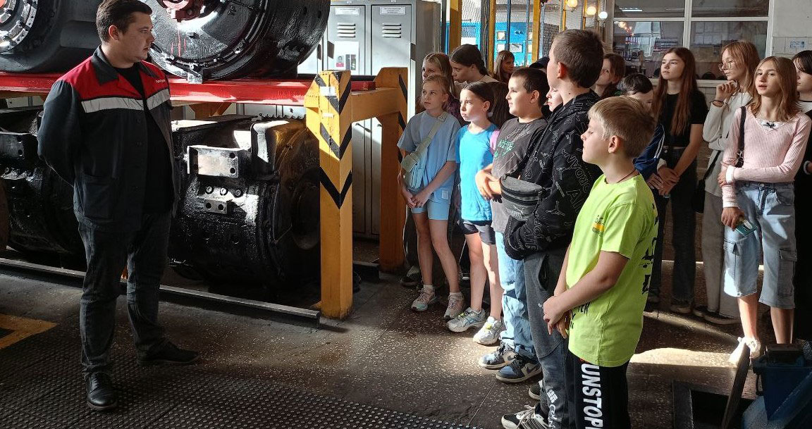 Ребята посмотрели работу сервисного локомотивного депо изнутри, увидели, как проводится ремонт грузовых магистральных двухсекционных электровозов ВЛ80.