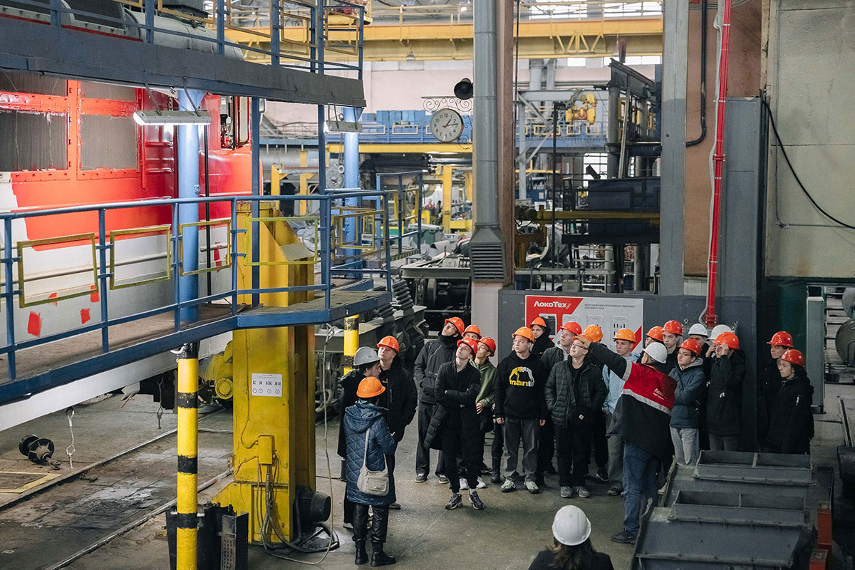 Затем группа студентов во главе с приемщиком локомотивов Алексеем Мальцевым отправилась по производственным площадкам. Ребята ознакомились с участками технического ремонта (ТР-3), электрических машин, цехом выкатки колесно-моторных блоков и колесно-тележечным участком. Самым интересным стал осмотр локомотивов. Экскурсанты смогли исследовать электровозы ВЛ80с и 2ЭС5К, а также вернуться в прошлое, побывав в кабине действующего паровоза серии Л. В завершение сделали общую фотографию на тепловозе ЧМЭ-3.