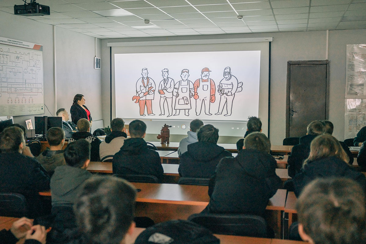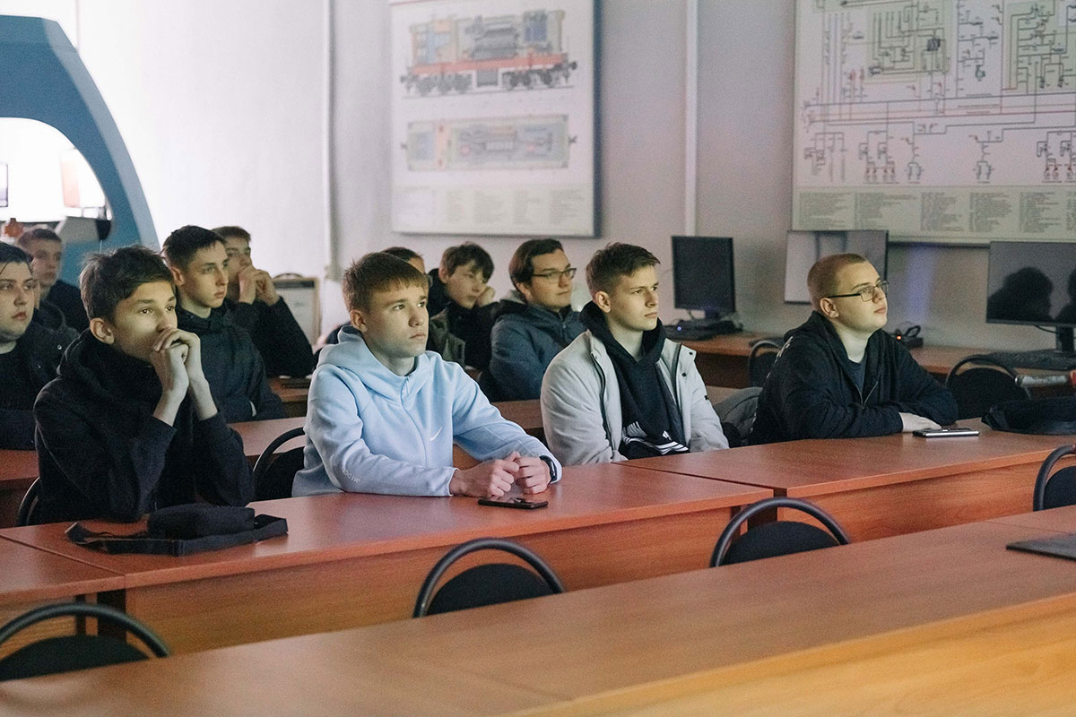 Программа началась в учебном классе с вступительной речи руководителя группы управления персоналом Светланы Плотниковой и просмотра корпоративного видеоролика, рассказывающего о деятельности компании. С.Плотникова рассказала ребятам о возможности прохождения оплачиваемой практики и получения высшего образования от предприятия на базе Уральского, Самарского и Петербургского государственных университетов путей сообщения.