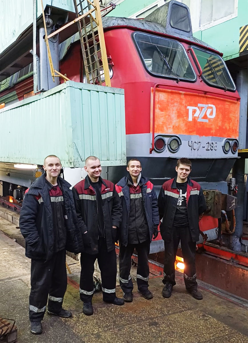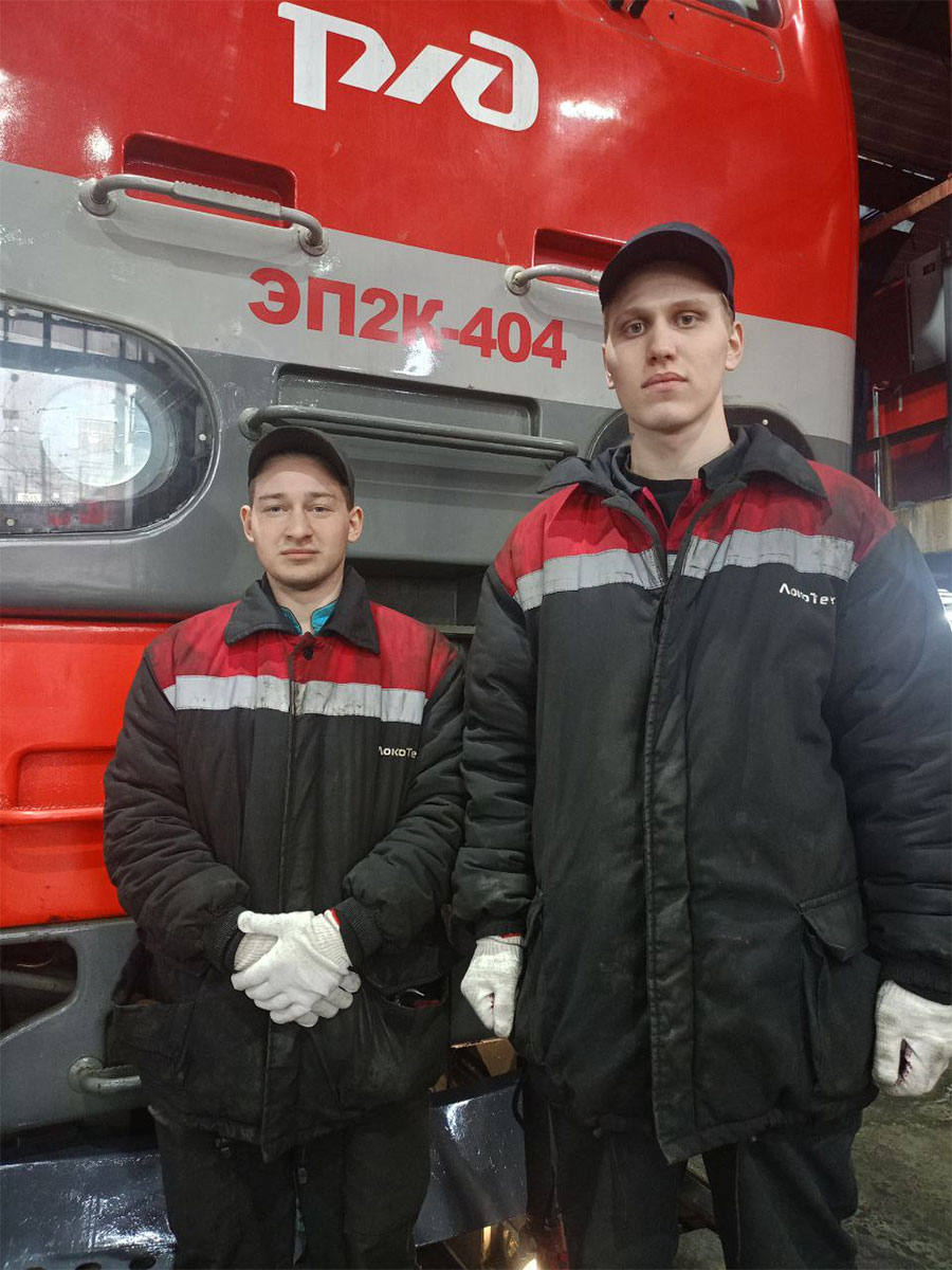 Учащиеся ГАПОУ МО «Профессиональный колледж «Московия» Владимир Евсеев, Алексей Михалин (4 курс, специальность «Техническая эксплуатация подвижного состава железных дорог»), Денис Полозов и Данила Поляков (4 курс, специальность «Управление и техническая эксплуатация локомотива») трудоустроены в СЛД «Ожерелье» с лета 2024 года. Ребята рассказали, что остались работать в депо после прохождения летней производственной практики.