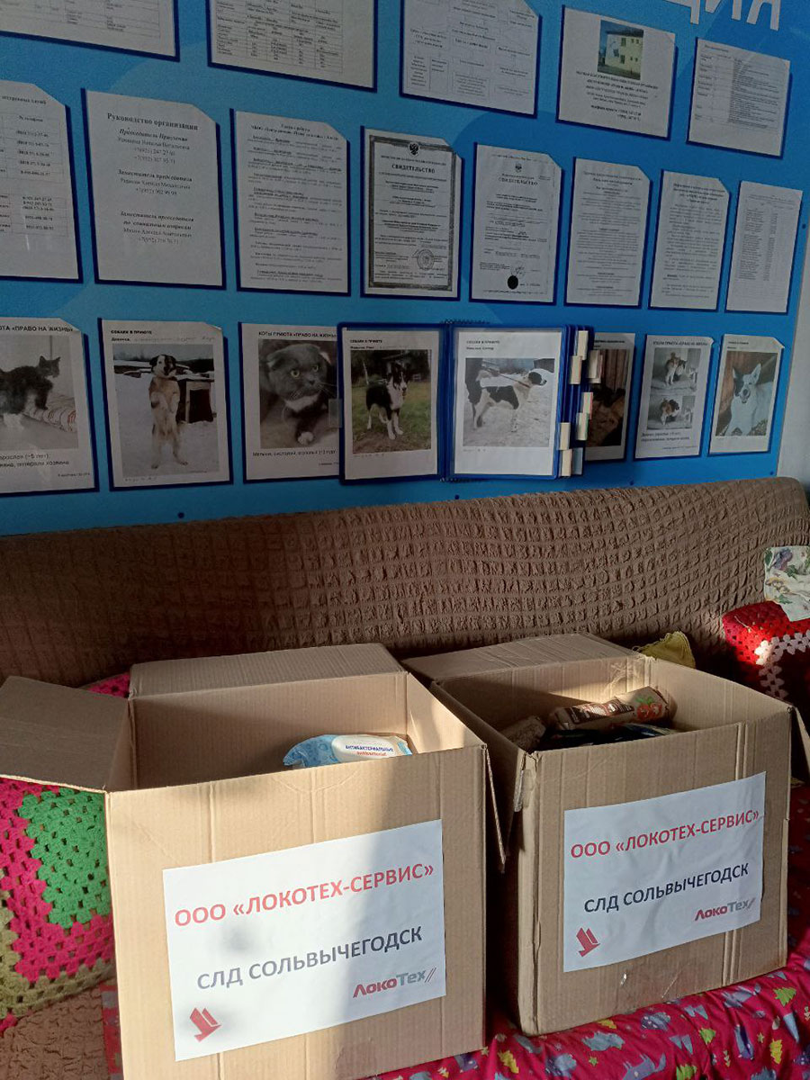 Одним из важнейших направлений развития корпоративной культуры в сервисном локомотивном депо (СЛД) «Сольвычегодск» считают волонтерскую деятельность. Дважды в год активисты депо организуют сбор средств для оказания помощи приюту для животных г. Котласа «Право на жизнь». В приюте содержатся не только кошки и собаки, но и дикие животные. Все они нуждаются в постоянном уходе и лечении.