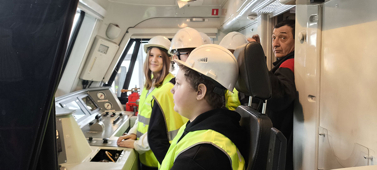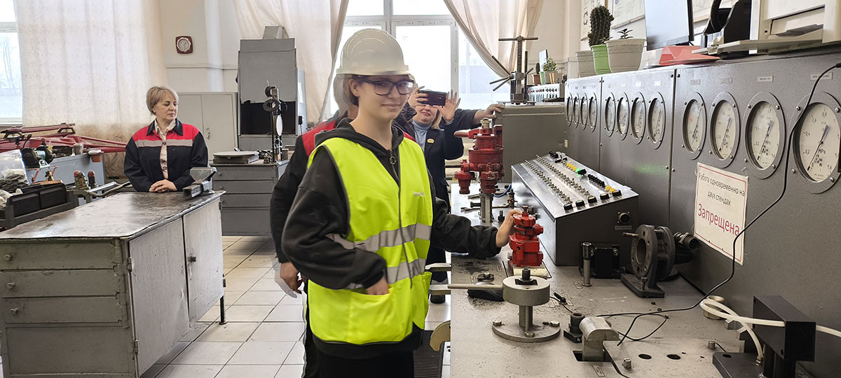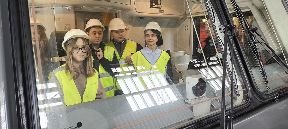 2025 год в компании «ЛокоТех» посвящен человеку труда, и главными героями мероприятия стали представители рабочих профессий. Учащиеся побывали на участке по ремонту автотормозного и пневматического оборудования, где мастер Виктор Шиян рассказал о деятельности подразделения и на опытном образце показал работу крана машиниста. Ребята потренировались ставить кран в положение, заданное мастером участка. Работу настоящего мостового крана, перемещающего колесные пары, ребята увидели на участке текущего ремонта локомотивов ТР-3.