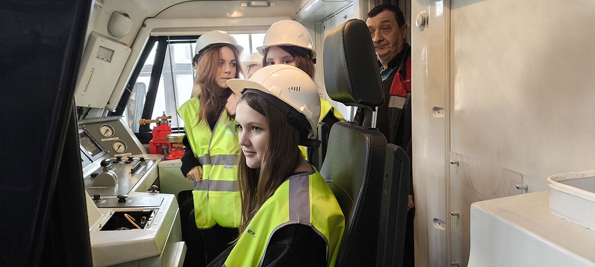 На участке ремонта электровозов ТР-1 ребята поднялись в кабину локомотива 2ЭС5К «Ермак», где слесарь по ремонту подвижного состава Владимир Бут рассказал о рабочем месте машиниста и ответил на вопросы.
