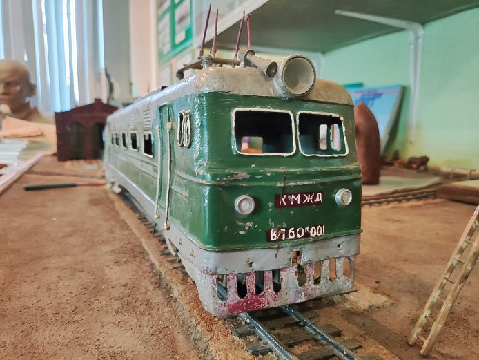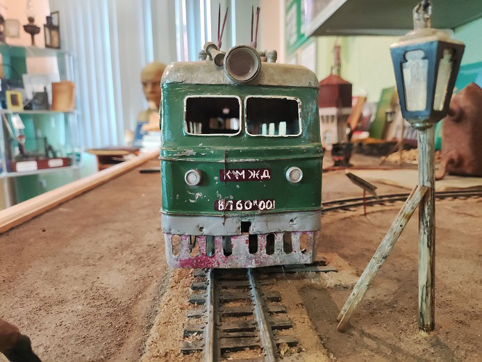 По словам Николая Владимировича, макет локомотива ВЛ60 был изготовлен в 1967 году учениками средней школы №17 ст.Курдюм под руководством педагога Юрия Киселева в единственном экземпляре. Электровоз выполнен в масштабе 1/30 из металла.