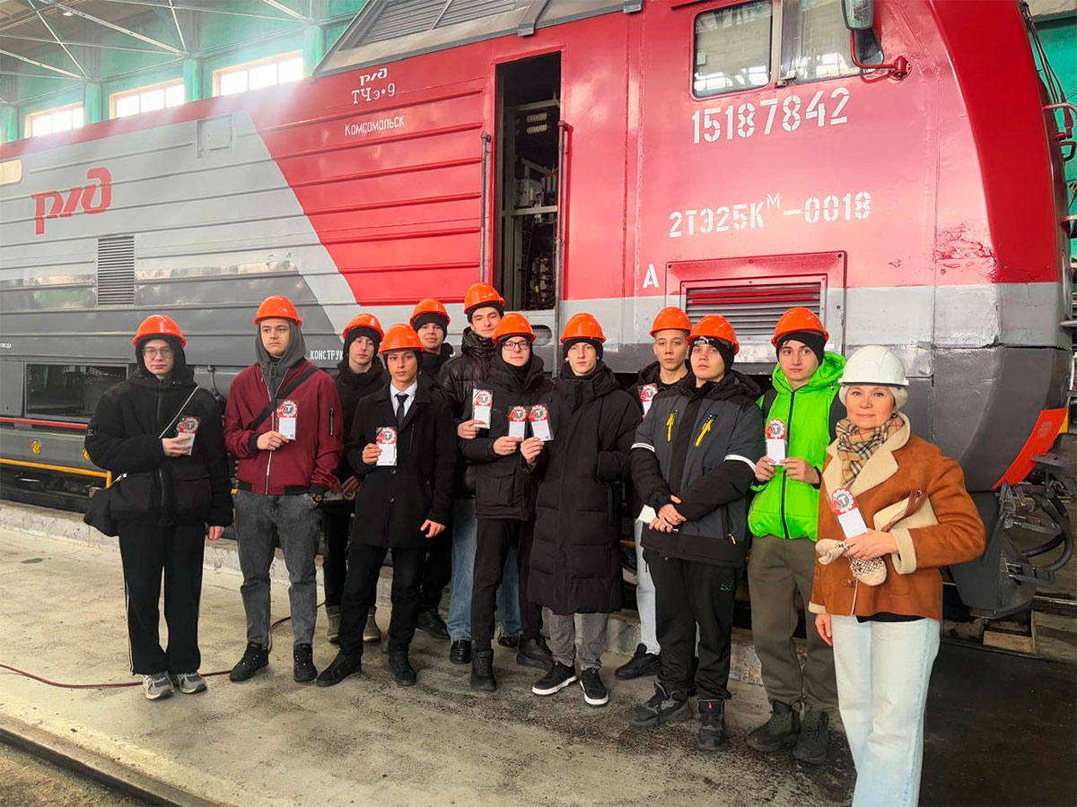 Помимо производственных площадок депо, ребята также смогли побывать в кабине управления локомотива. Участники экскурсии задали интересующие их вопросы об обучении, профессиональных обязанностях и преимуществах работы в компании. В завершении визита студентам вручили на память фирменные подарки от компании.