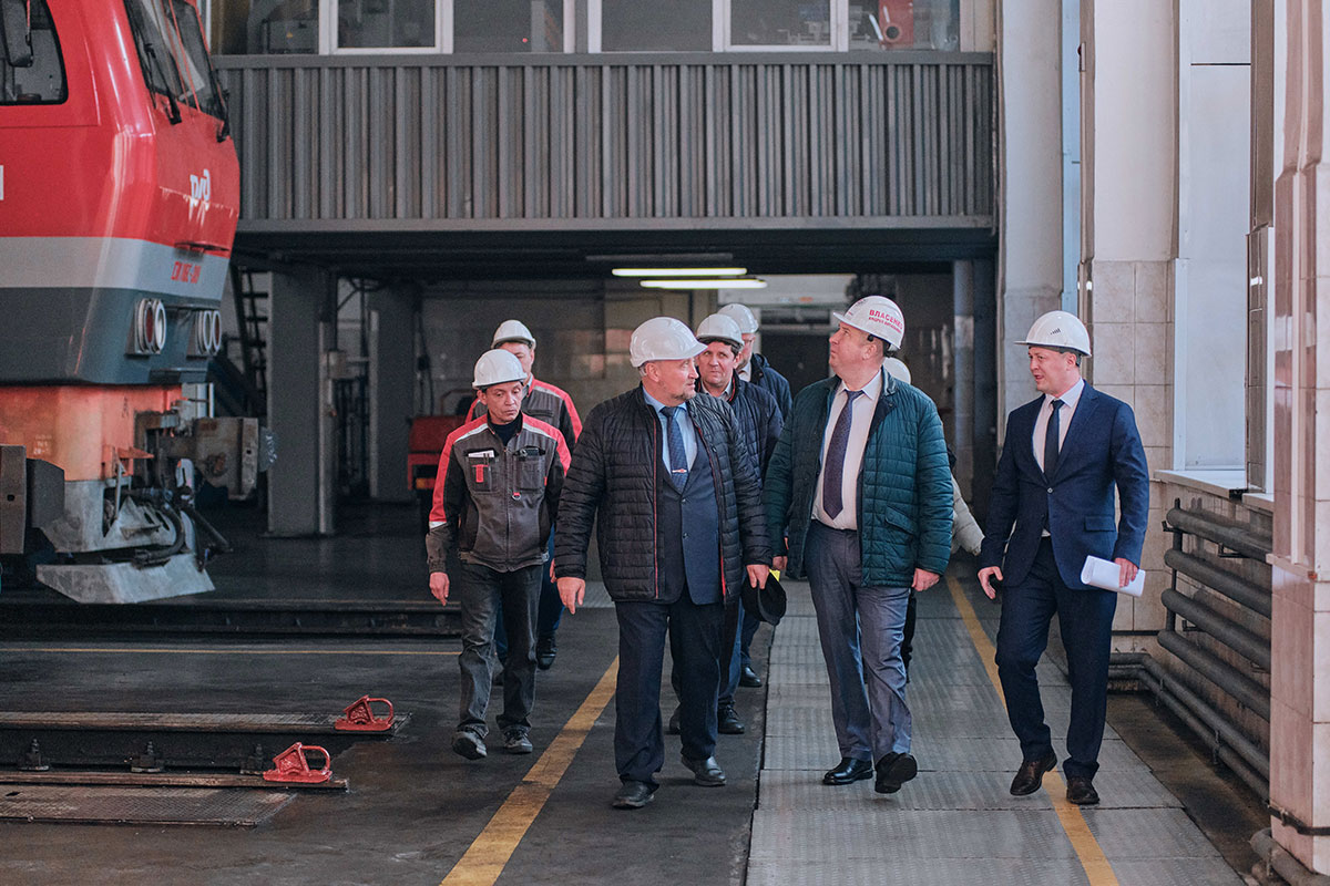 Рабочая встреча с коллективом началась с осмотра территории предприятия, в процессе которого был обсужден вопрос предстоящего капитального ремонта депо. Андрей Власенко посетил историческую веерную часть здания, построенную в 1914 году, осмотрел поворотный круг с железнодорожными путями к воротам депо, производственные участки и отделения предприятия.