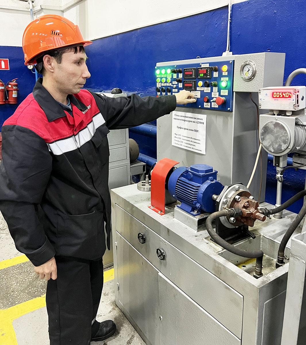 В сервисном локомотивном депо Агрыз-Южный Западного филиала компании «ЛокоТех-Сервис» введен в эксплуатацию новый стенд А2358М. Оборудование предназначено для испытаний масляных насосов компрессоров серий КТ6, КТ7, К2, ПК-5,25 с возможностью измерения и сохранения полученных в процессе испытаний результатов.