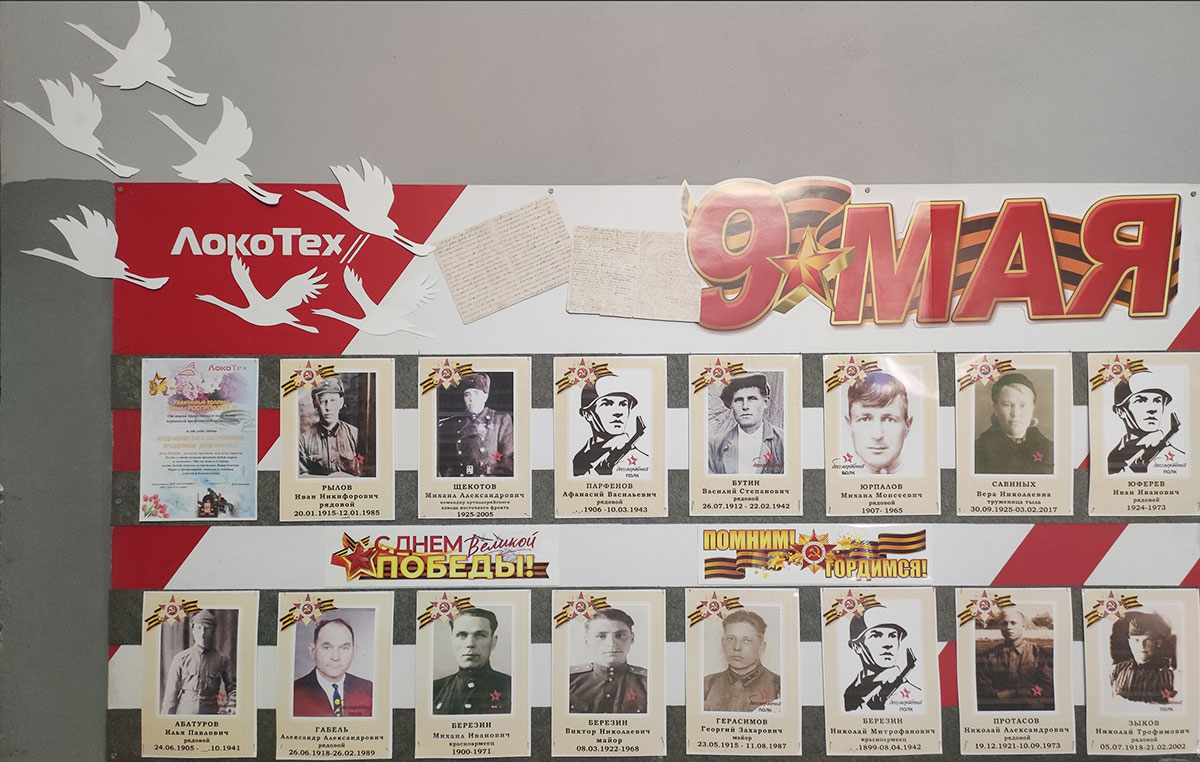 Работники депо в течение месяца приносили фотографии своих родственников, участвовавших в Великой Отечественной войне, письма с фронта, из которых был сформирован памятный стенд.